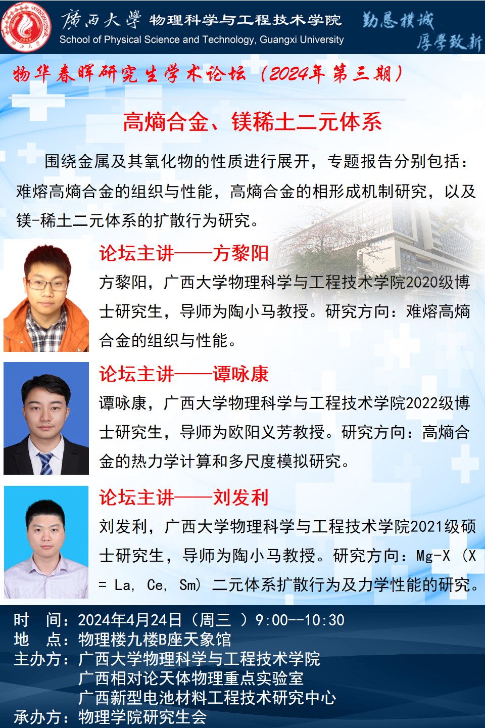 下一篇:2024年物华春晖学术论坛(第二期):分享同学——连波、林芳萍、任淼