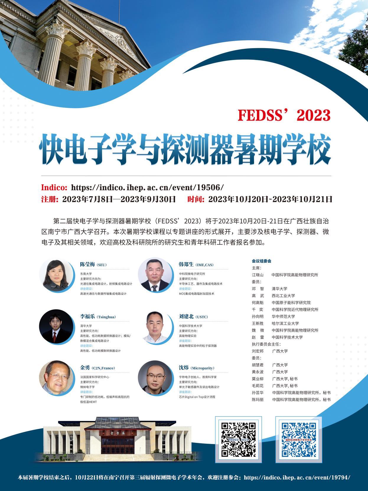 第二届快电子学与探测器暑期学校(FEDSS’2023)将于2023年10月20-21日在麻豆视频