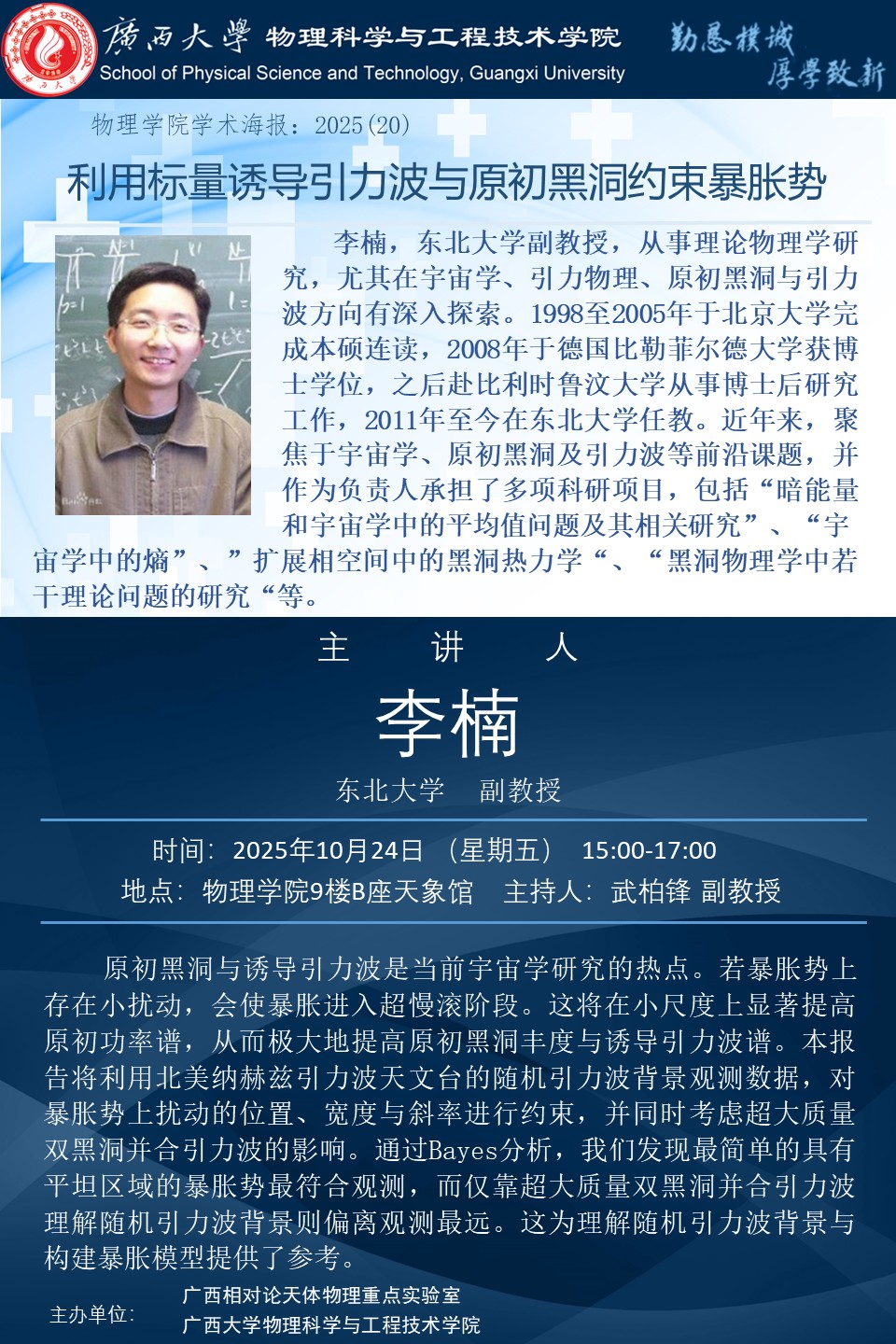 上一篇:2025年学术报告系列之21:The first ten years of gravitational wave astronomy