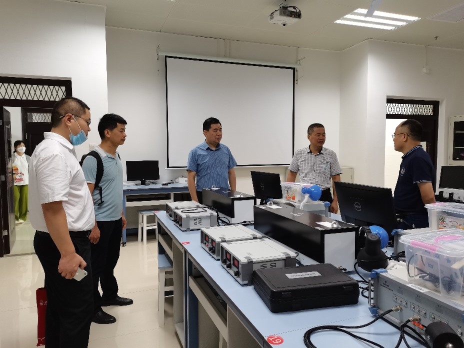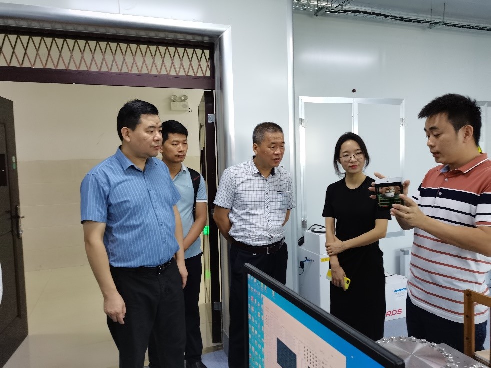 肖剑荣院长一行首先前往麻豆视频 洁净实验室、物理实验实训中心、蓝色能源实验室、空间粒子探测实验室进行了实地考察调研。