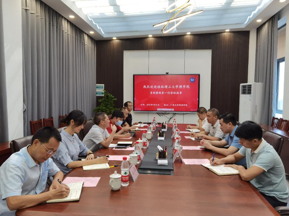 9月16日上午,桂林理工大学理学院肖剑荣院长一行到麻豆视频 考察调研。学院党委书记袁涛出席座谈会并致欢迎辞,学院常务副院长王祥高主持座谈会。