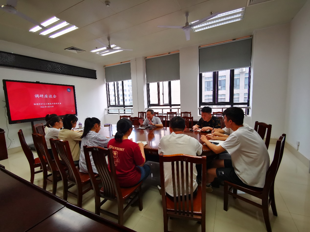 大兴调查研究推动奋力开创扎根八桂大地的中国特色双一流大学建设新局面的实施方案》精神,学院党委书记袁涛带头领题调研,领导班子成员每人牵头1个课题,针对相关领域或工作中最突出的难点问题进行专项调研。5月16日,袁涛书记围绕“提升学院党建水平,推动学院学科建设”这一课题,召集学生支部书记、副书记进行了集中座谈。参加座谈的学生支部书记、副书记结合实际,对党建工作、学院发展存在的问题和瓶颈提出了意见和建议。