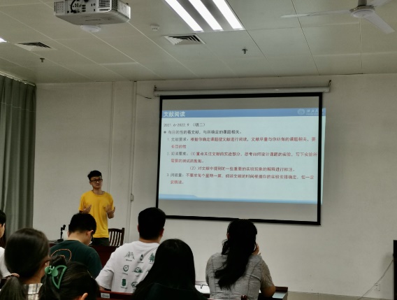 研三党员代表向同学们分享了自己的科研经验,鼓励大家在开展实验研究时要勤动手、多思考,理性地看待失败,并善于总结经验,提升发现问题、解决问题的能力。从文献阅读方法、资料获取途径到数据处理常用软件介绍,现场“干货”满满,学习氛围浓厚,展现支部党员对科研的热情,以及互助、进步的雷锋精神。