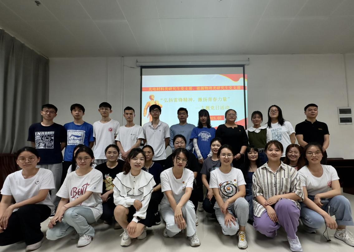 为深入学习宣传贯彻党的二十大精神,贯彻落实习近平总书记对深入开展学雷锋活动作出的重要指示精神,培育和践行社会主义核心价值观,增强党员的使命感和责任感,增进党员对雷锋精神的认识和理解,2023年3月22日,光电材料类研究生党支部和能源物理类研究生党支部在学院A506教室联合开展“弘扬雷锋精神,激扬青春力量”主题党日活动。