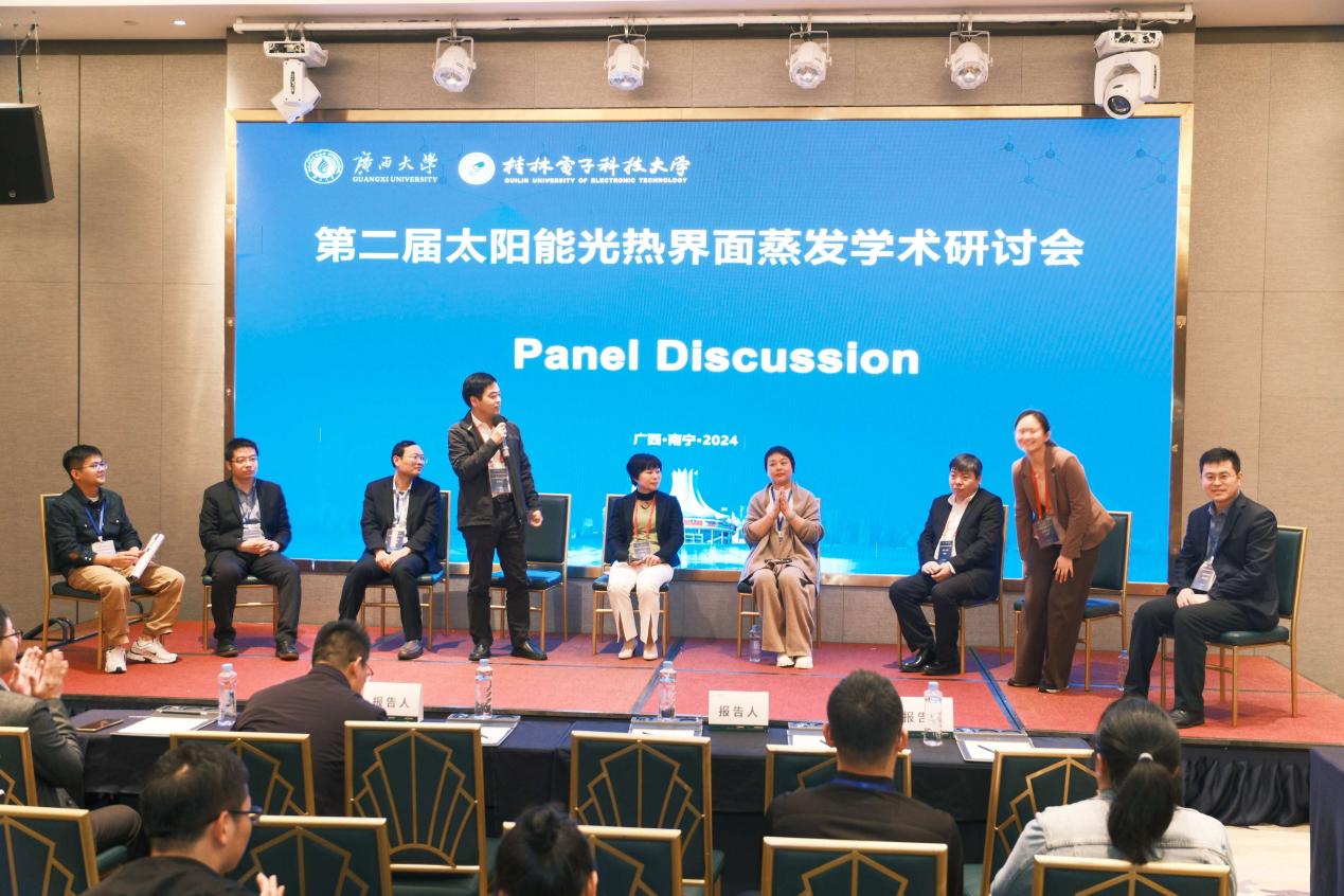 、桂林电子科技大学主办,省部共建特色金属材料与组合结构全寿命安全国家重点实验室,纤维材料改性国家重点实验室(东华大学),广西电子信息材料构效关系重点实验室(桂林电子科技大学),广西新型电池材料工程技术中心和Advanced Fiber Materials协办,南京大学、南澳大学、浙江海洋大学支持举办。此次研讨会围绕太阳能光热界面蒸发机理、材料和器件,智能光热调控和太阳能光催化三个议题展开深入讨论。