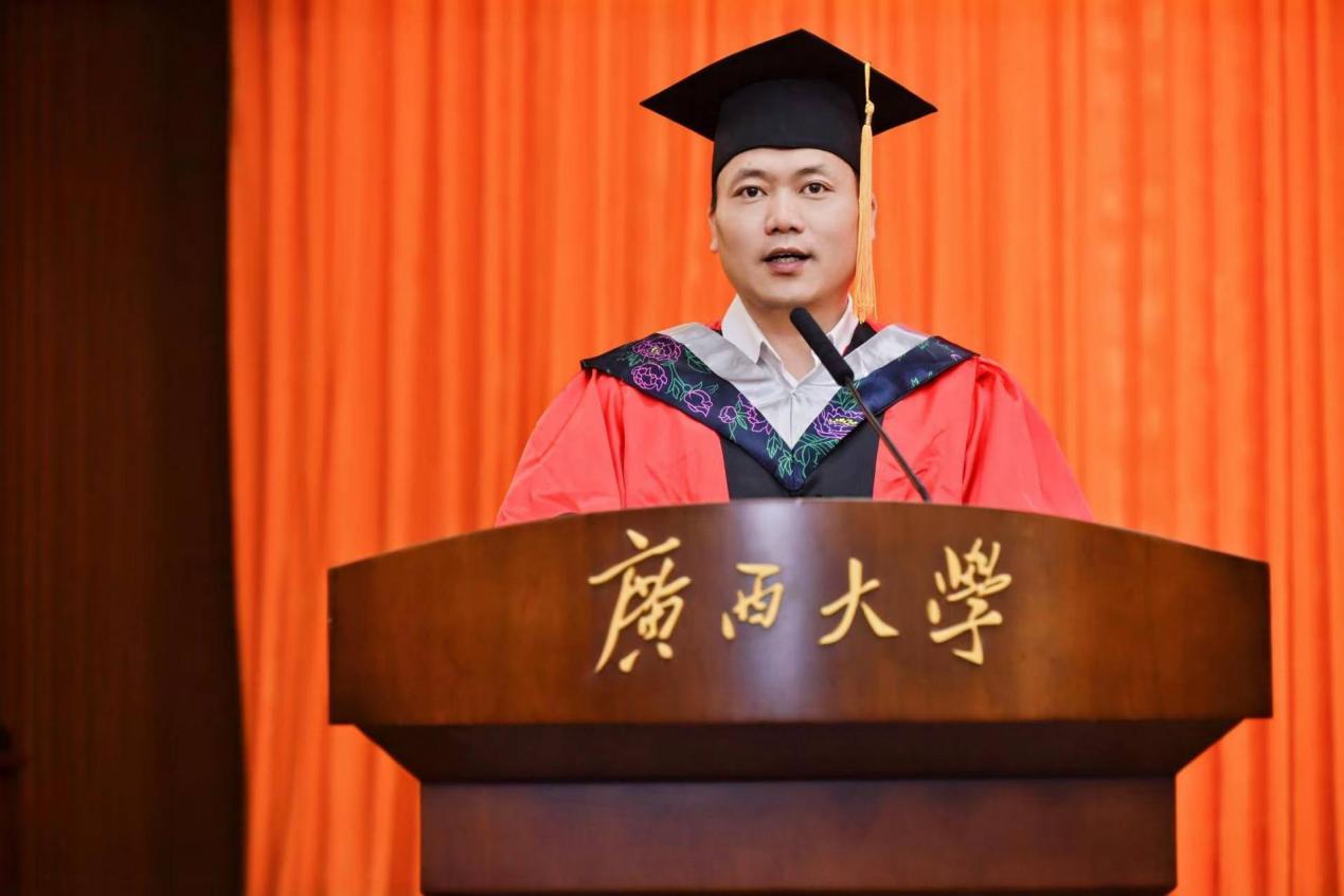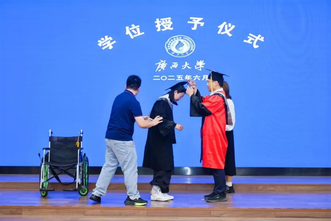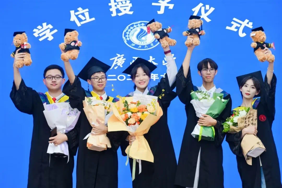 “复兴中华,发达广西”“努力,努力,大家一齐努力”……毕业典礼暨学位授予仪式在嘹亮的校歌声中落下帷幕。