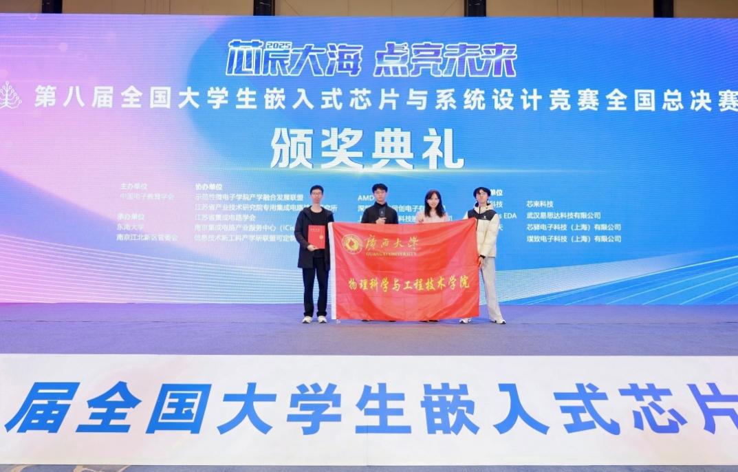 参赛队经过激烈角逐,斩获全国一等奖1项、三等奖2项,并成功问鼎“安路科技杯”企业大奖,该奖项仅授予五大企业赛道评选出的最佳队伍,创下自赛事举办以来广西高校的最好成绩。