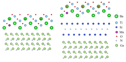 通过结构模拟计算,我们发现相比于使用p-GaN衬底,SiN/p-GaN复合衬底更有利于上层薄膜中菱形相的形成。这是因为GaN的六方结构很容易触发生成菱形相的SiN,并且我们将SiN缓冲层的厚度控制在30 nm左右,这样可以最大限度的提高SiN缓冲层中菱形相的比例。随后再用带有菱形相的SiN/p-GaN作为复合衬底,将会更容易诱导上层薄膜的菱形相产生。
