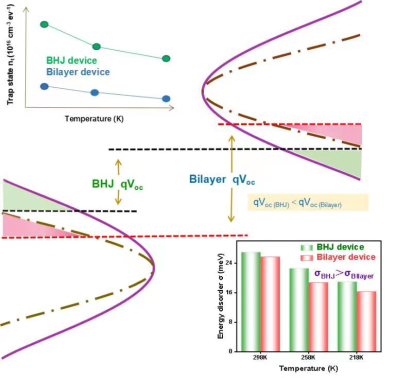 相比于太阳光谱,室内光谱的吸收范围在400nm-780nm之间,因此相比于电流,电压与填充对OSCs 的效率起着更重要的作用,而其又与缺陷态、能级紊乱密切相关。基于此,麻豆视频
