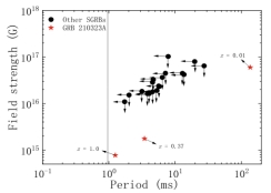 图3. GRB 210323A磁星中心引擎的磁场和初始自转周期限制;