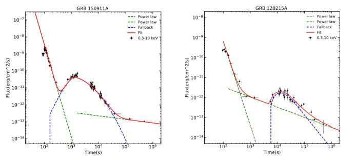 自发现伽马射线暴以来,对其瞬时辐射、余晖辐射和中心引擎进行了许多研究。虽然大量的观测证据与理论模型一致,但仍有许多悬而未决的问题,例如,如何识别GRB的中心引擎。在我们的工作中,我们收集了许多含有X射线鼓包的长伽马射线暴样本,通过我们的筛选方法,保留了28个符合要求的样本。统计结果表明:X射线鼓包的峰值时间呈双峰分布(早期X射线和晚期X射线bump两组)。所以我们猜测:这两个组可能对应于不同的中心引擎。我们使用MCMC(Markov Chain Monte Carlo)方法,用磁星和黑洞模型分别拟合了早期和晚期X射线鼓包。拟合结果显示:早期鼓包与磁星模型拟合结果较好,晚期鼓包更符合黑洞模型。从而支持我们的猜测,包含早期X射线鼓包和晚期X射线鼓包的伽马射线暴可能由不同的中心引擎驱动。这也为区分其他伽马射线暴的中心引擎提供一种独特的方法。
