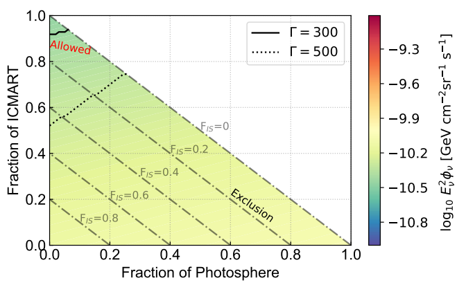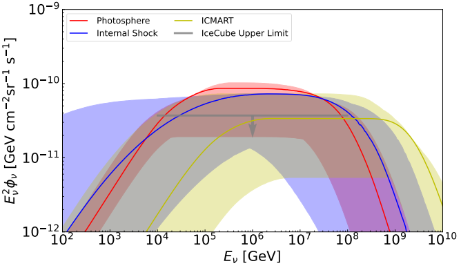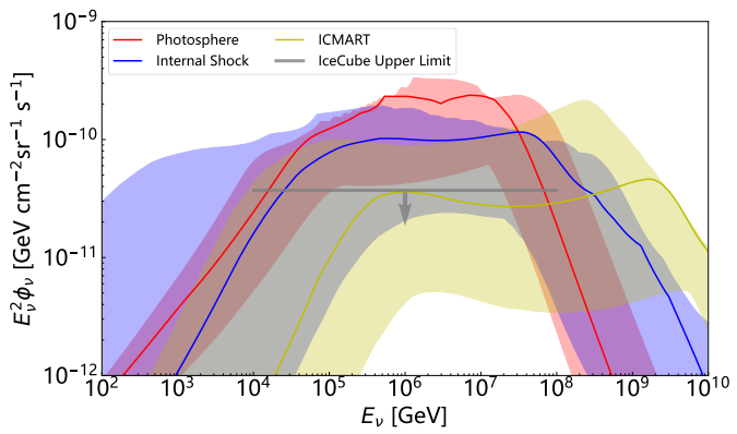 图1. 使用真实样本的方法在单模型起源下计算得出的伽马暴的弥散中微子流量