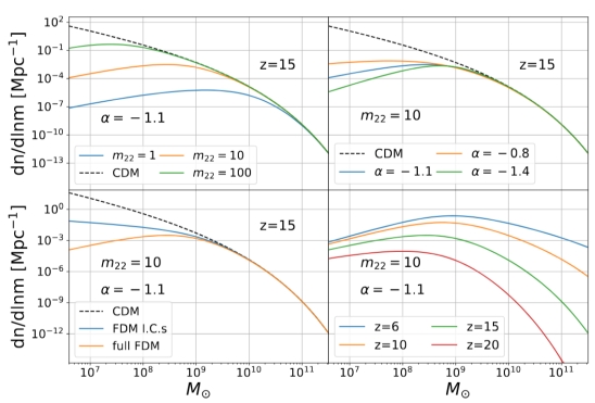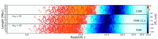 暗物质在宇宙大尺度结构的形成和演化过程中扮演着极其重要的角色,超轻暗物质是解决冷暗物质模型小尺度挑战的主流候选体之一。直接探测超轻暗物质非常困难,但是它在宇宙学上的丰富效应为我们打开了间接限制其物理性质的窗口,来自宇宙黎明和再电离时期的中性氢21厘米信号就是其中之一。超轻暗物质不仅通过压低小尺度初始功率谱抑制结构形成,还在非线性演化时期通过量子压强提供额外的抑制效应。本工作利用21cmFAST代码进行了超轻暗物质的宇宙再电离数值模拟,首次考虑了超轻暗物质非线性结构形成所导致的独特暗晕质量函数,得出了超轻暗物质宇宙学模型下21厘米信号的准确预言。