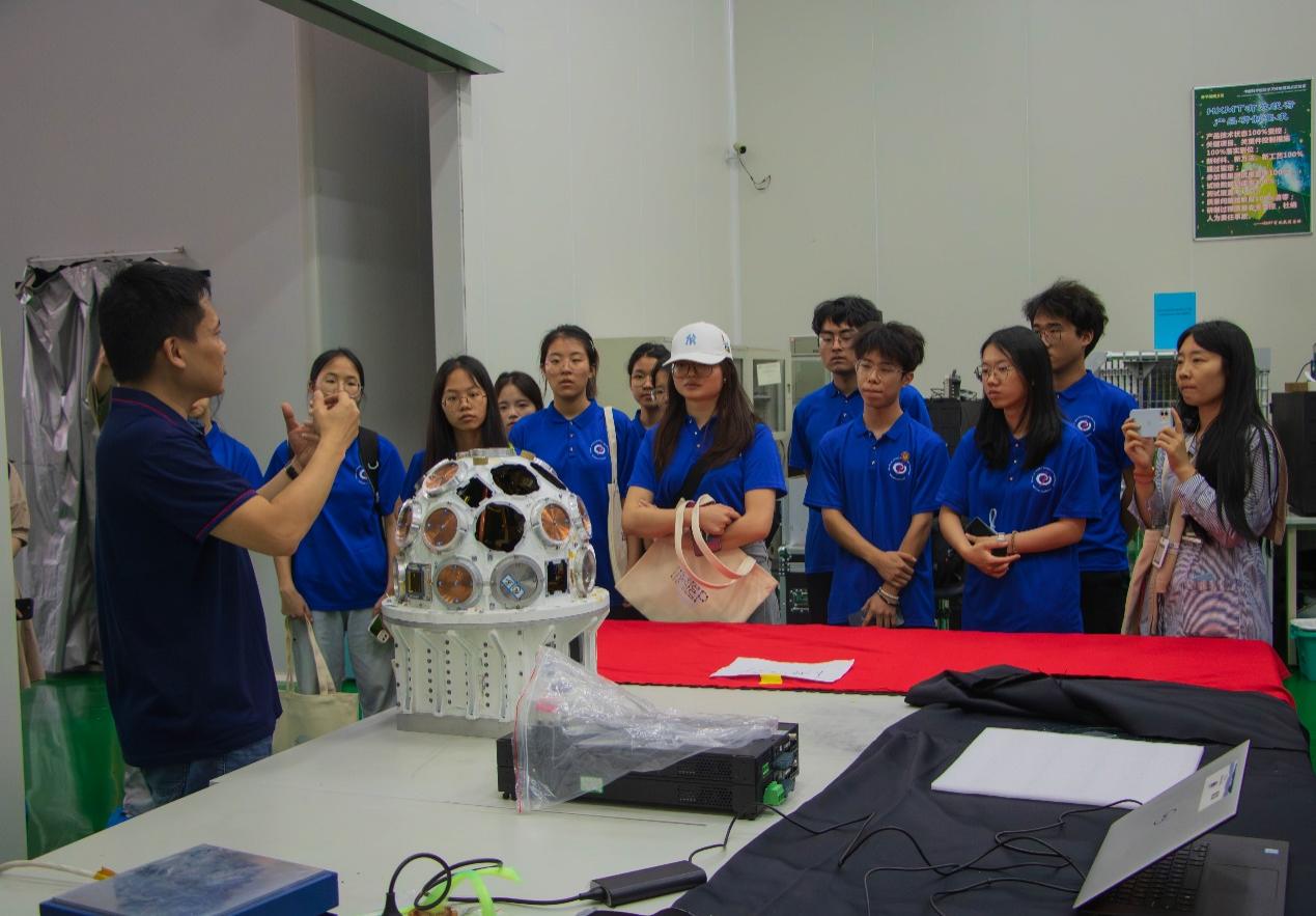 At the Institute of High Energy Physics of the Chinese Academy of Sciences, Academician Zhang Shuangnan delivered an academic report on deep exploration of extreme universe for students. In this report, students experienced how scientists uncover the mysteries of the universe and explore the mysteries hidden under extreme conditions. Subsequently, Liu Hongbang, Vice Dean of the School of Physics, led the students into the High Energy Physics Laboratory and explained to them the detection principles of these precision instruments.
